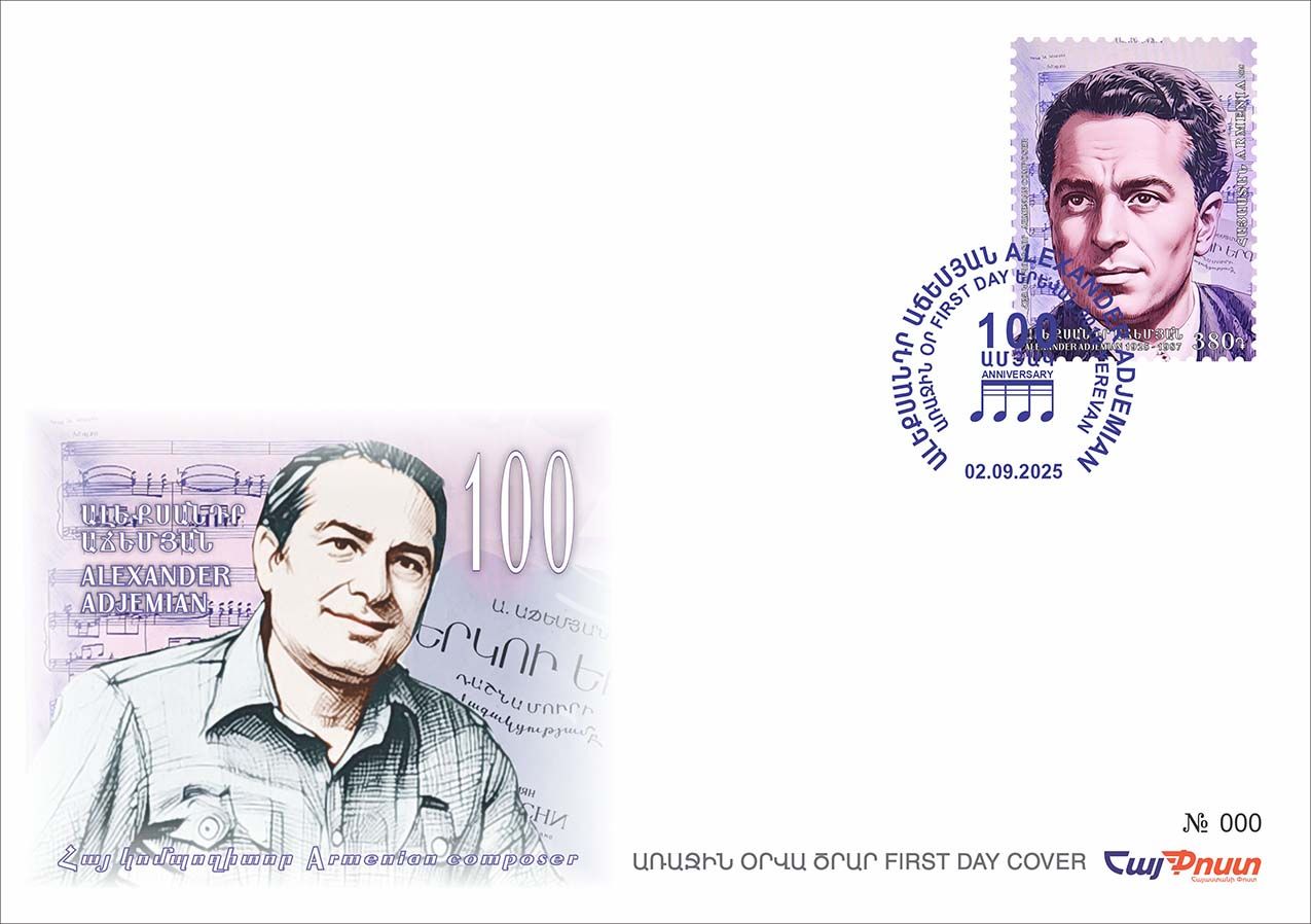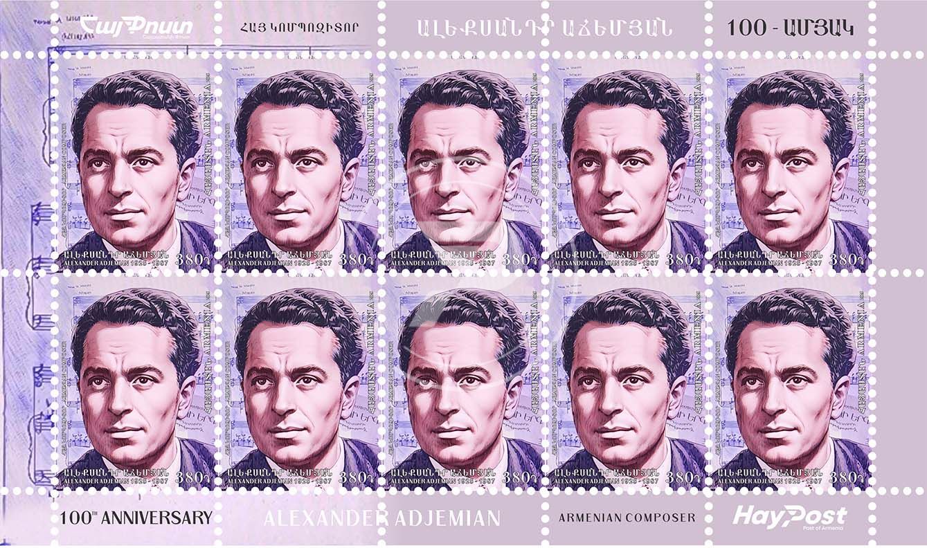 380 ՀՀ դրամ անվանական արժեքով նամականիշի վրա պատկերված է հայ ականավոր կոմպոզիտոր, ՀԽՍՀ ժողովրդական արտիստ Ալեքսանդր Աճեմյանը (1825-1987թթ.)՝ երաժշտական նոտաների խորապատկերին: