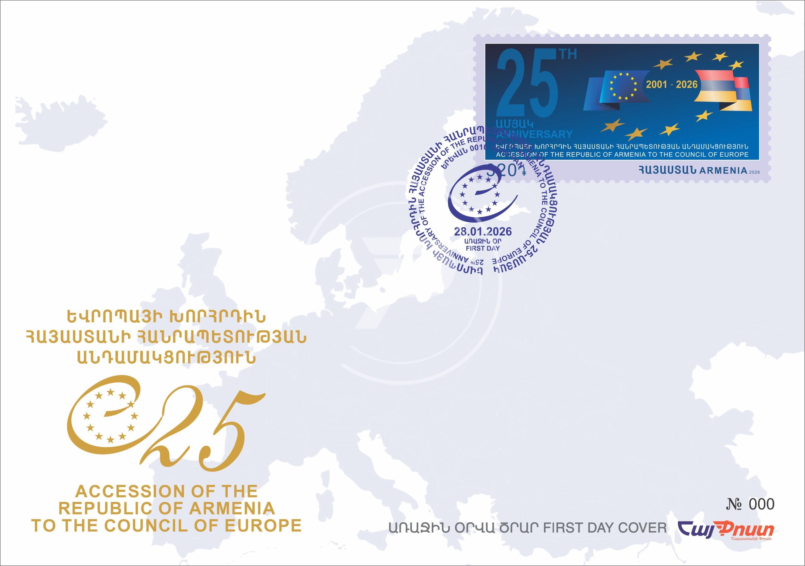 2026 թվականի հունվարի 28-ին շրջանառության մեջ է դրվում մեկ նամականիշ՝ նվիրված «Եվրոպայի խորհրդին Հայաստանի Հանրապետության անդամակցության 25-ամյակ» թեմային: